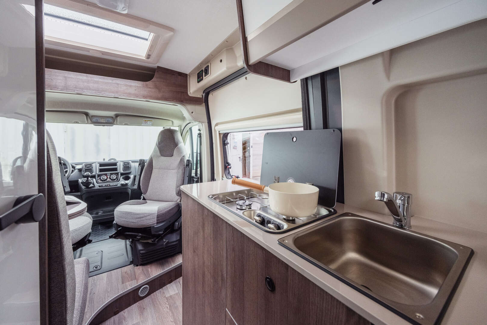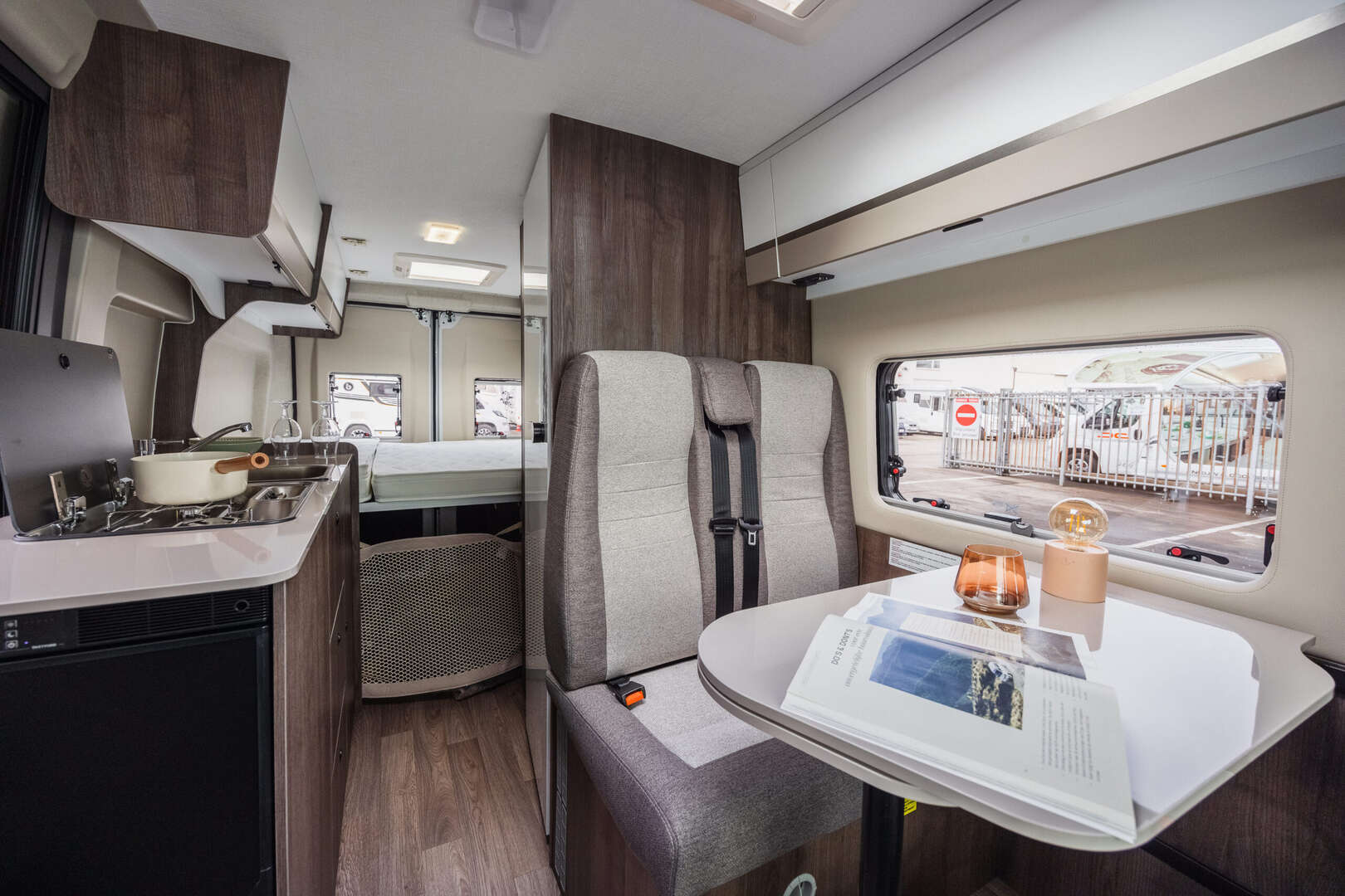 De Benivan 144 UP (2026) is een 5,99 m buscamper met 4 zitplaatsen en 2 slaapplaatsen. De verwijderbare lattenbed biedt extra garage-opslag. Dankzij de 84L compressorkoelkast, badkamer met raam en het UP-Pack met zonnepaneel, luifel en sfeerverlichting ben je klaar voor elke trip.